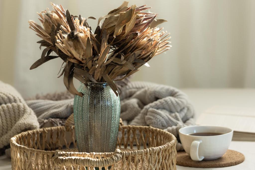 Erdige Pigmente, sanfte Grüntöne oder kreidige Pastells lassen Räume atmen. Mineralische und pflanzliche Bindemittel ergeben matte, ruhige Oberflächen. Erzähle uns, welche ungiftige Farbpalette dein Zuhause verwandelt hat, damit andere leichter ihre Richtung finden.